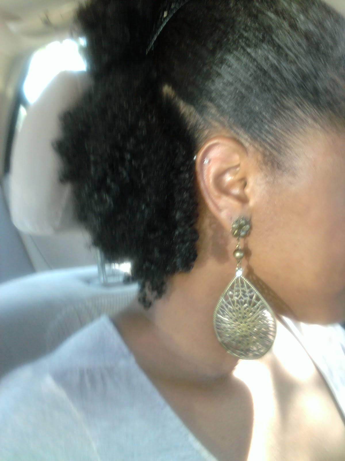 Too long for wash-n-go's (but not long enough to hang). Short, but not short enough to be put into a cute hair clip-free wash-n-go styling. The great thing about natural hair is the versatility. When I felt that my hair was not looking good in a wash n go styling, then I did braidouts/twistouts.